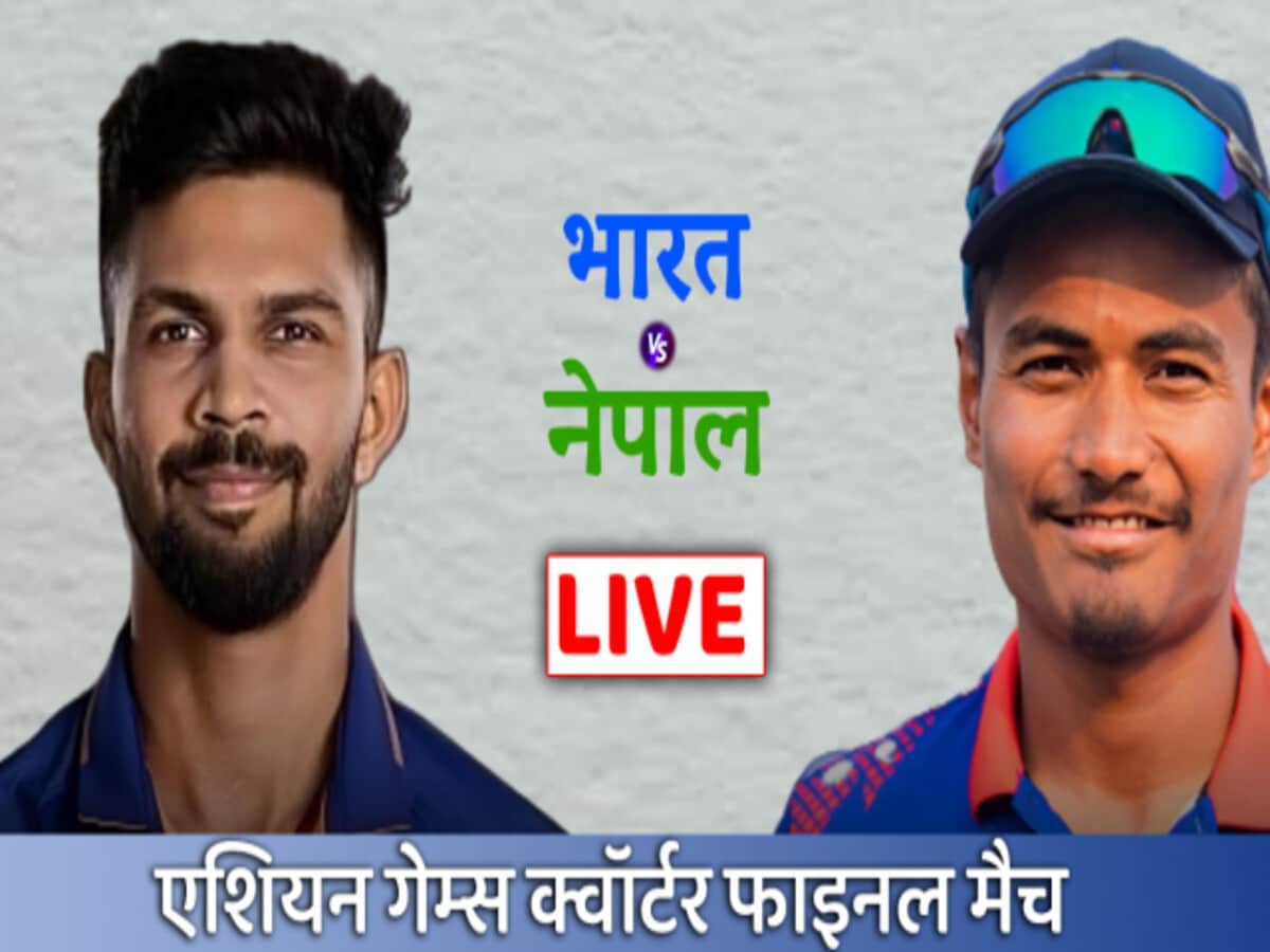 India vs Nepal Asian Games QF Match Live: चीन में जारी एशियन गेम्स 2023 के क्वॉर्टर फाइनल में भारत के सामने नेपाल की टीम है। इस मैच में भारत की टीम के कप्तान रुतुराज गायकवाड़ ने टॉस जीतकर पहले बल्लेबाजी करने का फैसला किया है। नेपाल की टीम इन खेलों में अब तक खतरनाक दिखी है, क्योंकि टीम ने दो मुकाबले बड़े अंतर से जीते हैं। हालांकि, दोनों मैच नेपाल के कमजोर टीमों के खिलाफ हुए हैं। भारत और नेपाल का आमना-सामना इससे पहले एशिया कप 2023 में हुआ था, जहां भारत ने बड़े अंतर से मैच जीता था।